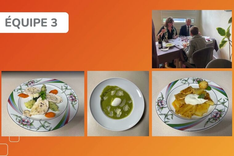 Durant 2h, les équipes se sont confrontées pour la réalisation d’un menu en cuisine et le dressage en salle :